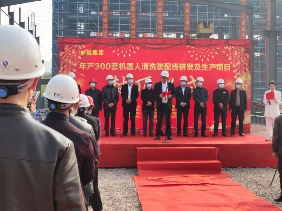 2022年11月19日上午,对于“中威集团”来说是具有里程碑意义的一天,历时过5个多月的紧张施工,投资5000多万元的中威智能装备集团公司机器人清洗装配线研发及生产项目主体楼全面封顶。宜昌市夷陵区委常委、副区长许祖钢出席活动。